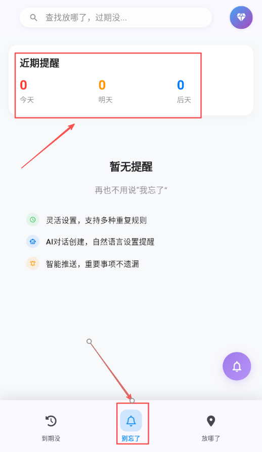 忘不了AI智能提醒是你的智能物品管家,用起来特别顺手。随手拍照就能记录物品保质期和生产日期,再也不用担心东西放过期。它还会主动提醒你快到期的物品,支持语音搜索和对话创建提醒,管理物品变得超轻松。