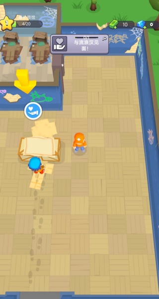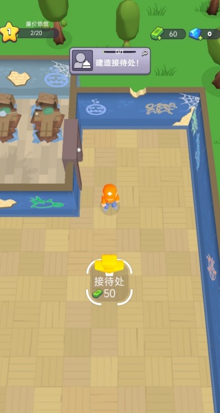 2、第二个任务是建造接待处,花费50金币就可以,利用虚拟摇杆控制角色到达。