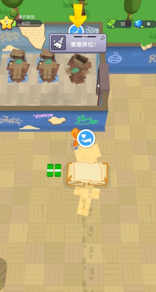 4、卧室里有3个床位,每一次流浪汉睡过之后,你就要清理床位,让其他的流浪汉用。