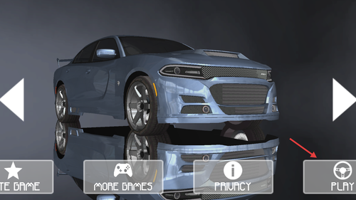 1、点击界面右侧的PLAY按钮进入游戏,选择心仪的道奇肌肉车,开启城市驾驶与竞速挑战的旅程。