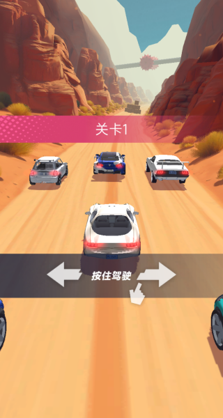 1、进入游戏后,你可以根据手指指示的去按住车辆驾驶,一直加速。