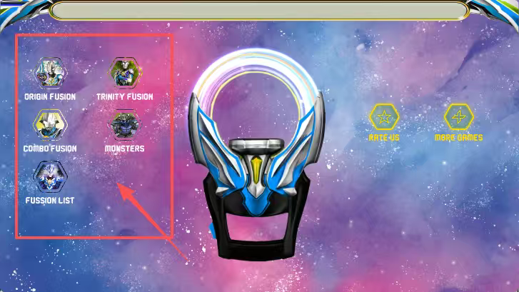 4、瞧这紫色星空图,红色框住的发光装置写着ULTRA HERO ORB ORIGIN,看里面角色形象和光环。