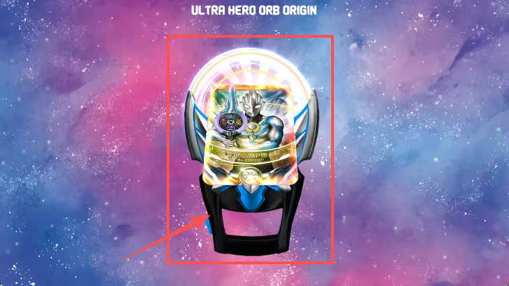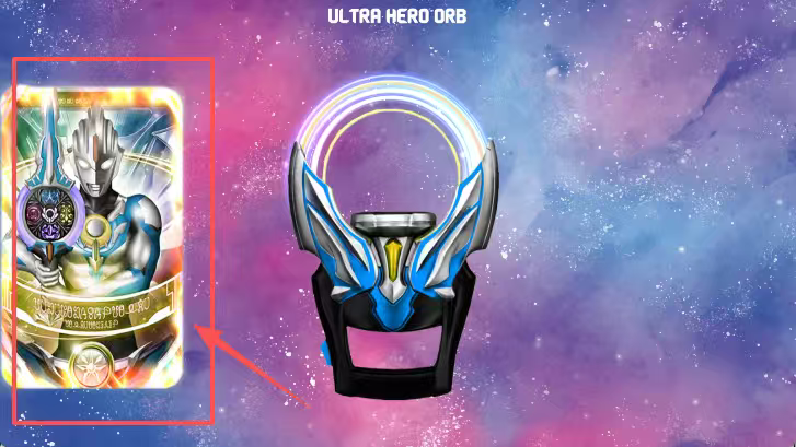 3、看这科幻图,左边蓝银战甲奥特曼卡片,右边蓝黑ULTRA HERO ORB道具,猜它们关联着变身玩法。