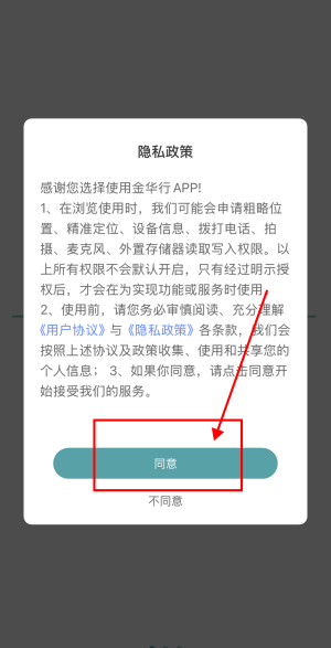 1、打开金华行app,点击“同意”。