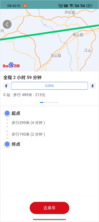 3、可以查询起点和终点的具体线路,确认后点击去乘车。