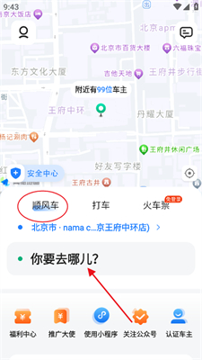 1、登录账号进入app之后,进入【顺风车】板块点击【你要去哪儿】。
