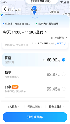 5、最后选择打车类型点击【预约顺风车】即可。