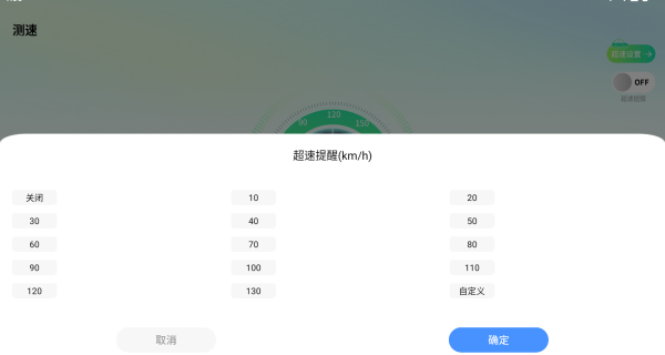 2、点击超速设置,选择一个数字,超速就会立马体型你降低速度。