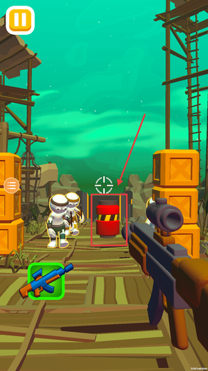 3、战斗过程中遇到红色油桶,我们可以瞄准射击引发爆炸,能高效消灭附近敌人,善用环境道具是制胜关键。