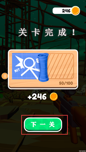 4、关卡完成后,点击下一关继续挑战,积累金币升级武器,把敌人通通驱逐出去,逐步强化战斗力。