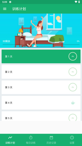 1、进入软件首页,用户就可以开启每天训练计划。
