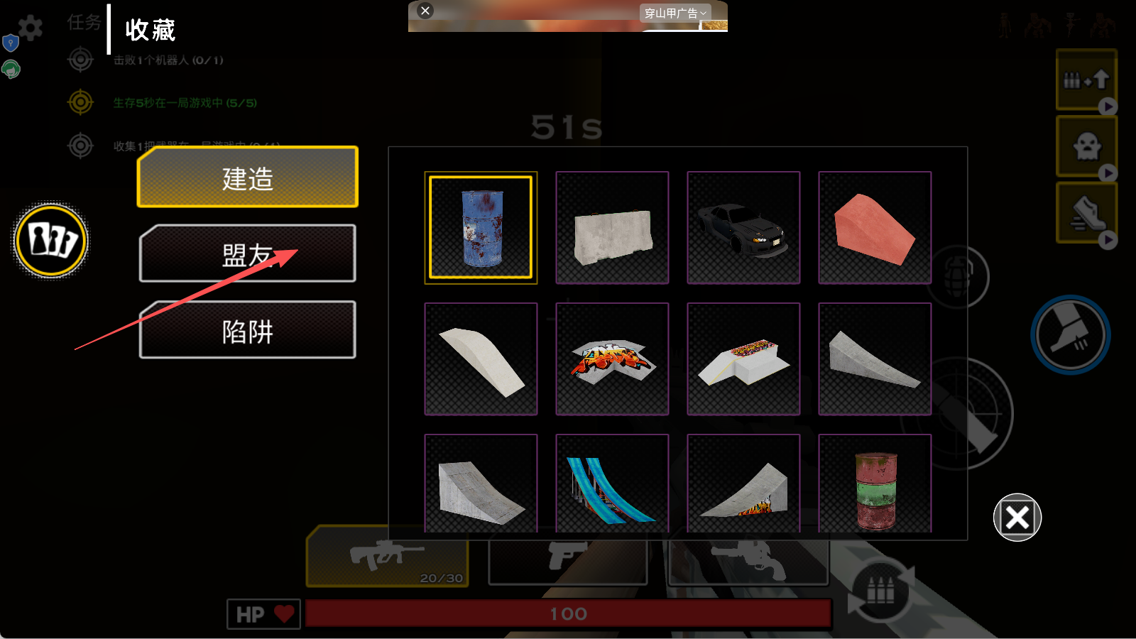 4、我们还可以点击建造的按钮,去创建我们的盟友或者是敌人,甚至是陷阱都可以的。
