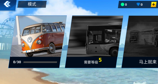 2、游戏提供了很多的车辆,除了第一辆,其他的都需要解锁。