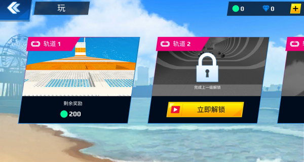 1、简化操作模式,通过简单按键即可完成加速、刹车与跳跃,轻松上手的同时不降低游戏刺激性。