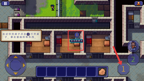 1、操控角色走近亚当的桌子,点击屏幕右侧1按钮,打开桌子仔细查看并获取其中隐藏的关键物品。