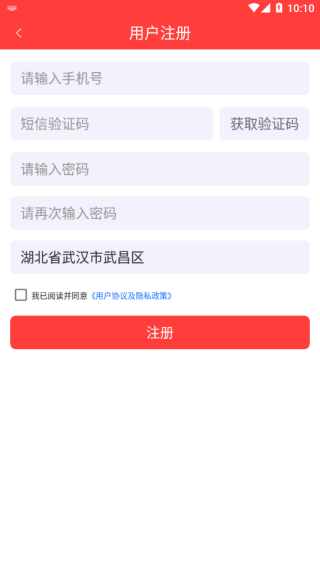 2、注册页面,用户输入手机号和验证码,并设置好密码,就可以注册登录了。