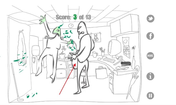 1、精心设计的13种隐藏互动方式,每种都有独特的动画表现与黑色幽默的剧情展开。
