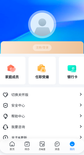 1、进入“我的”模块,可以在这里直接点击注册登录进入下一页。