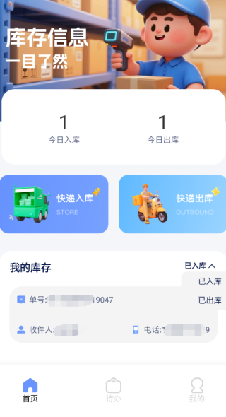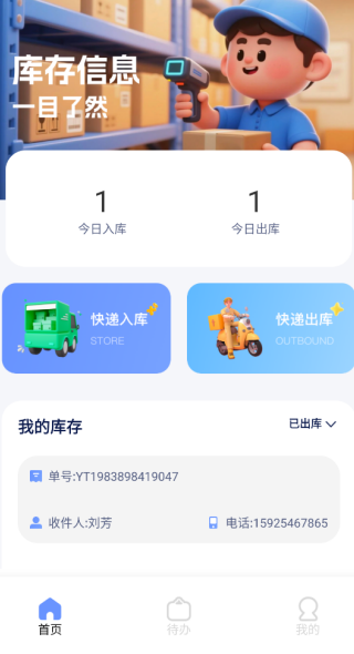 1、在首页,大家可以看到有一个快递出库的入口,直接点击进入。