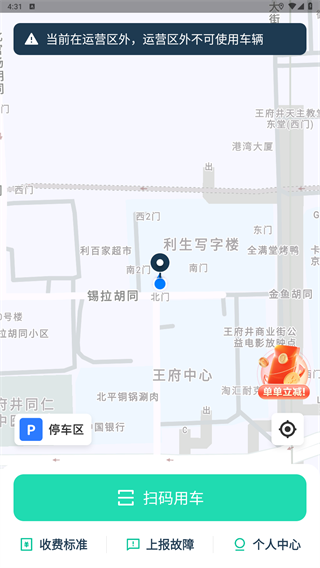 3、进入软件,在运营区内就可以看到周边的车辆位置。