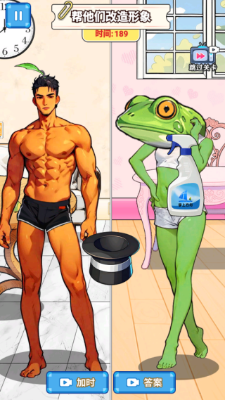 3、进入第二关,本关任务是帮助图中的两个人改造形象,成为俊男美女。