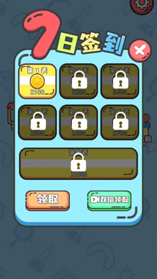 1、登录进入游戏,玩家可以参与签到任务领取金币奖励,连续七天签到能领取1000金币大奖。