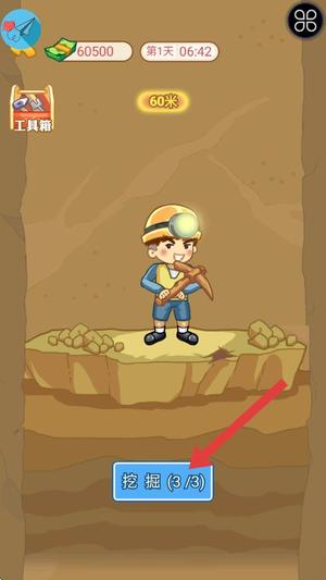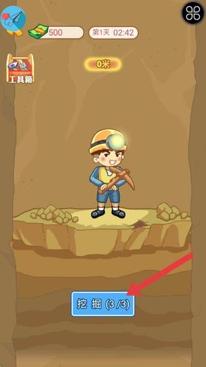 2、在挖矿界面点击挖掘按钮进行操作,每次成功可获得一定数量的金币用于起步资金。
