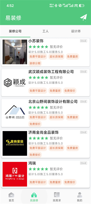 5、支持主动发布装修需求,等待平台认证服务方主动接洽。