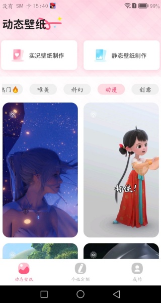 1、进入软件首页,你可以看到热门的壁纸,还可以实况壁纸制作。