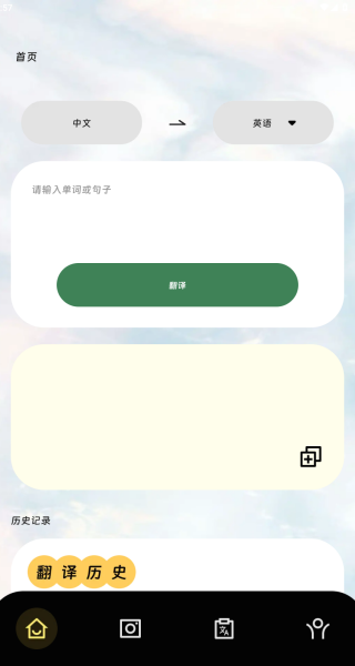 1、进入软件首页,你只需要输入单词或句子,就能快速翻译。