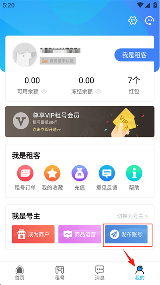 2、一键就能将账户信息进行了解,查看账户详细情况,在线进行租赁;
