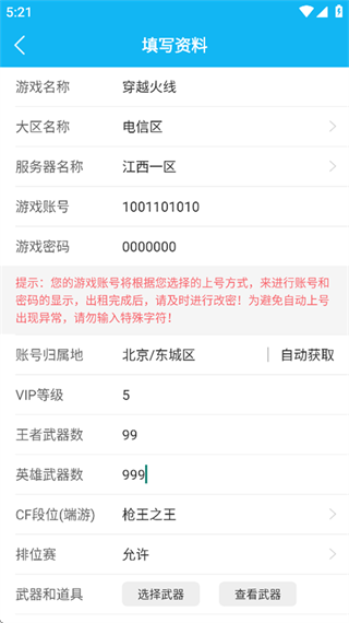 1、应用中拥有大量的账号信息,可以在线上选择喜欢的游戏账号进行租赁;
