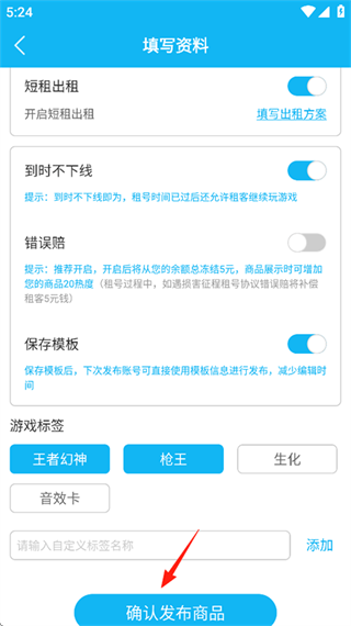 4、向下滑动都全部填写完成后就可以确认发布商品。