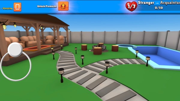 3、虚杆控制女友在小院中进行走动,在温馨的小院小憩一会,增加幸福感指数。