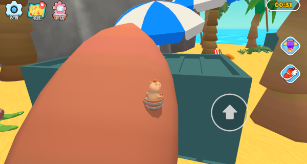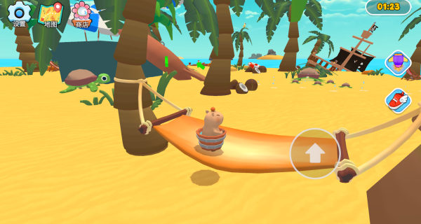 1、进入游戏后,你要利用虚拟摇杆操控着可爱的水豚四处探索和冒险。
