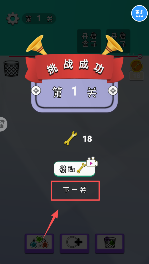 3、在挑战成功后,点击“下一关”按钮继续游戏。