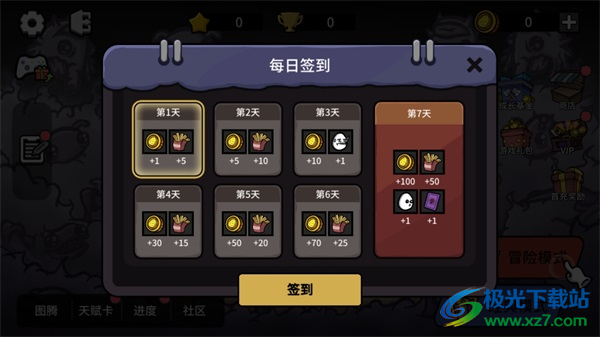3、第一天的签到获得的奖励是最少的,只有一个。