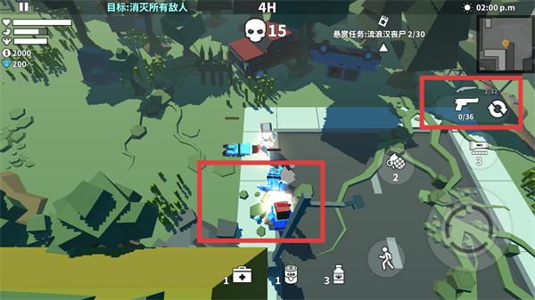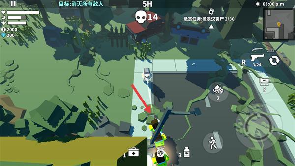 4、持续攻击丧尸,将剩余数量削减至【14】,同时利用角色移动调整站位,规避丧尸围攻,稳步向通关推进。