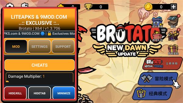 1、主界面可通过左侧面板调整【CHEATS】等设置,确认后选择【冒险模式】进入游戏,开启地下城挑战。
