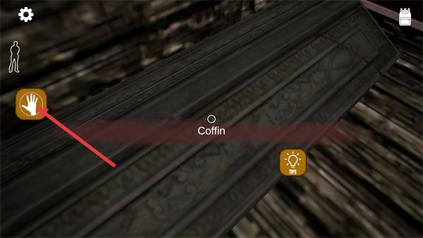 4、发现(棺材)类物品时,点击手掌图标互动,探索其中可能隐藏的解谜道具或线索。