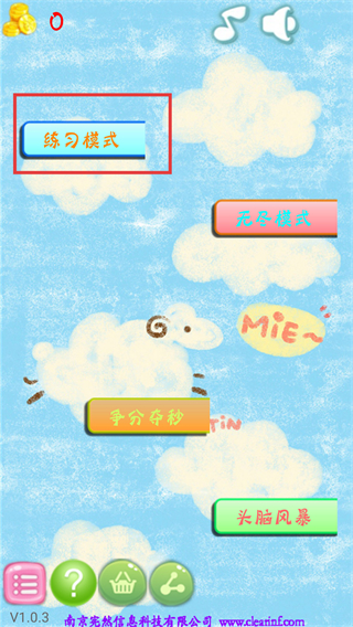 1、进入游戏后,点击【练习模式】按钮开启,为后续挑战不同模式做准备。