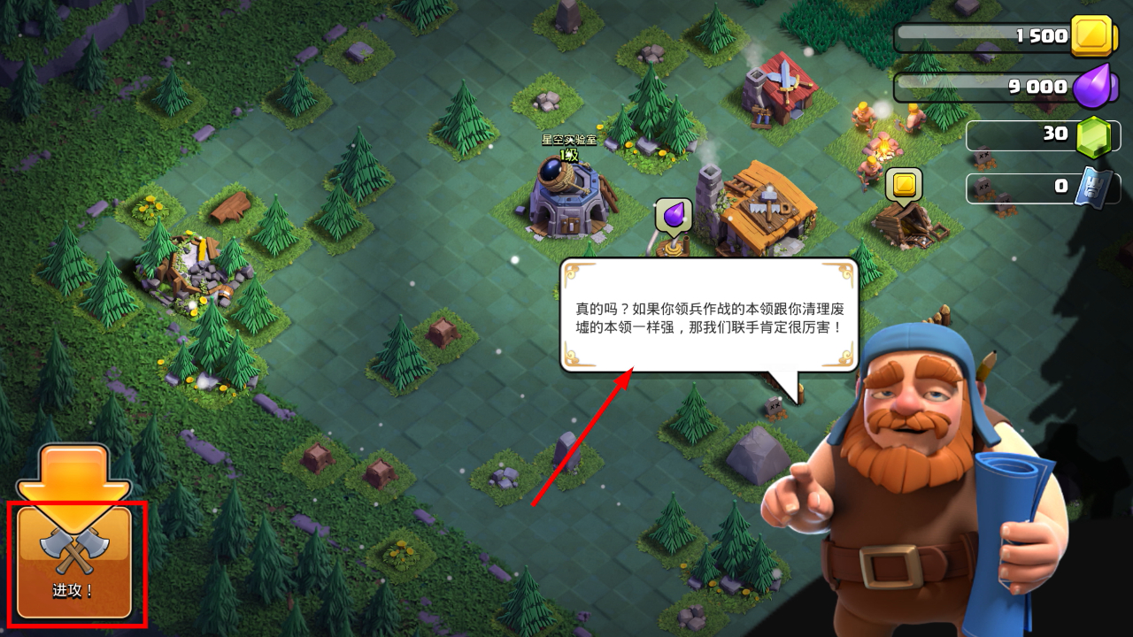 1、点击界面中的【进攻!】按钮,可触发与星空实验室相关的进攻准备,开启战斗前的关键交互步骤。