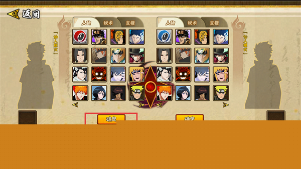 1、在角色选择界面挑选出战角色,点击【确定】按钮完成阵容配置,进入对战环节。
