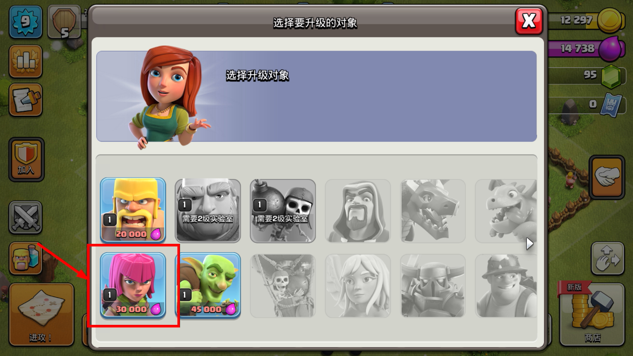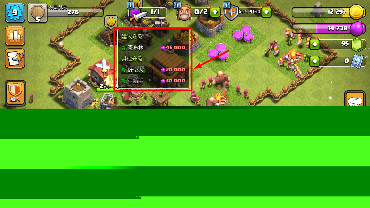 2、训练营内建议优先升级【新哥布林】,消耗【45000】资源,提升兵种等级能增强战斗实力。