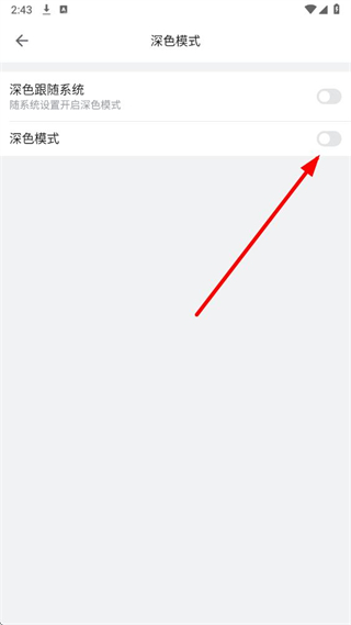 4、在深色模式页面,点击深色模式对应的开关,即可开启哔哩哔哩的深色模式。