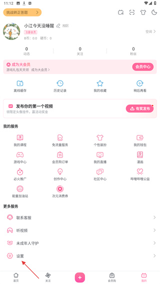1、在哔哩哔哩主界面,点击底部导航栏我的选项,进入个人中心页面。