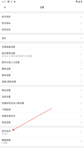 3、进入设置的页面内,点击下方定时关闭的功能按钮。