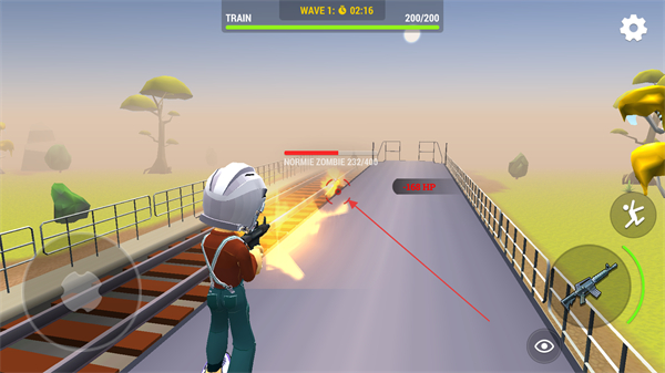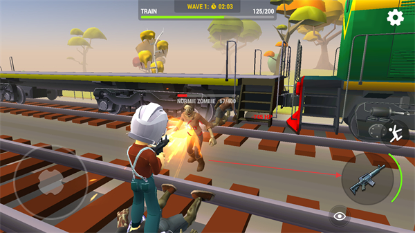 1、使用枪械攻击靠近的僵尸,清理列车旁的敌人,推进关卡进度。