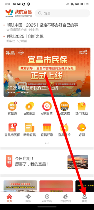 1、在我的宜昌页面,点击底部我的选项,进入个人页面。