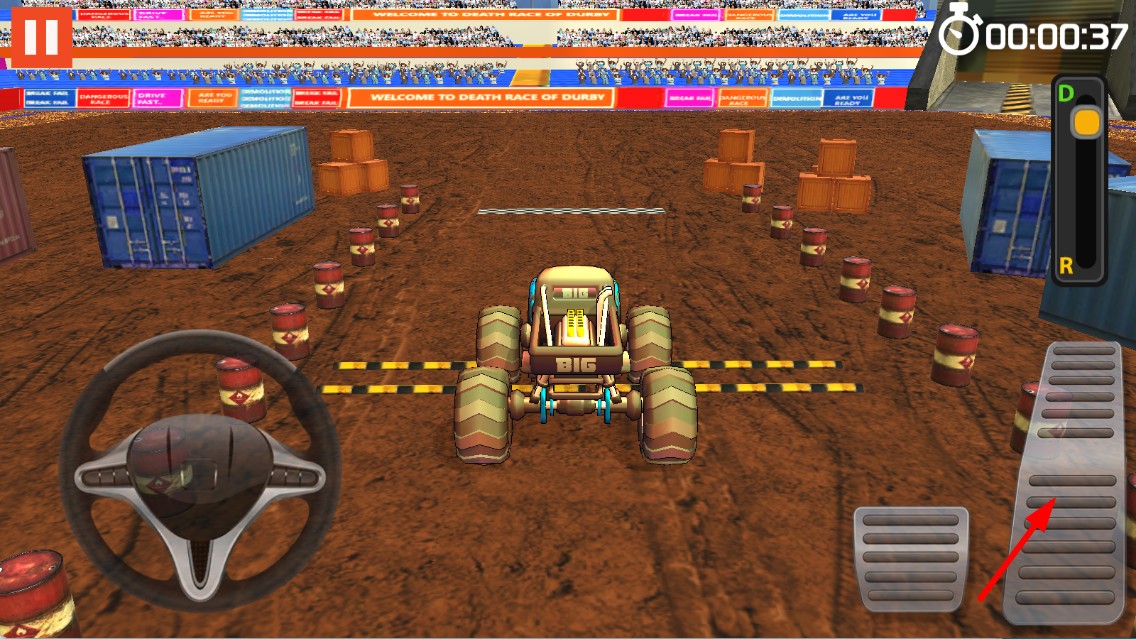 2、点击右侧油门按键,可让卡车加速,在布满障碍的赛道上行驶。